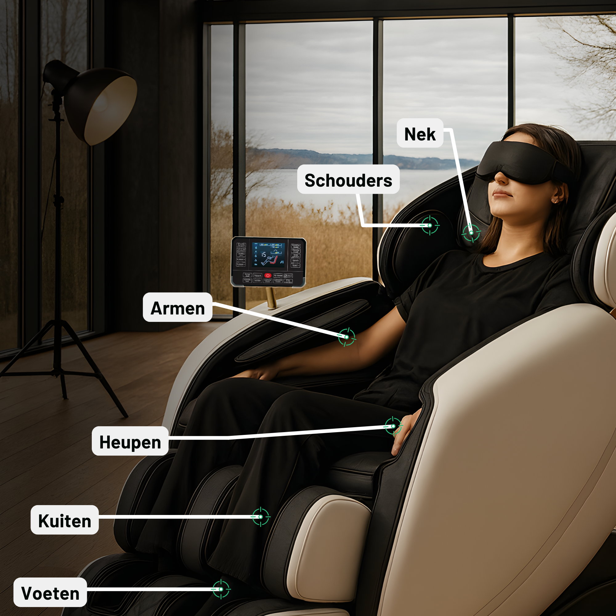 De premium massagerollers in combinatie met de strategisch geplaatste airbags zorgen voor een realistische massage zoals u in een spa mag verwachten.