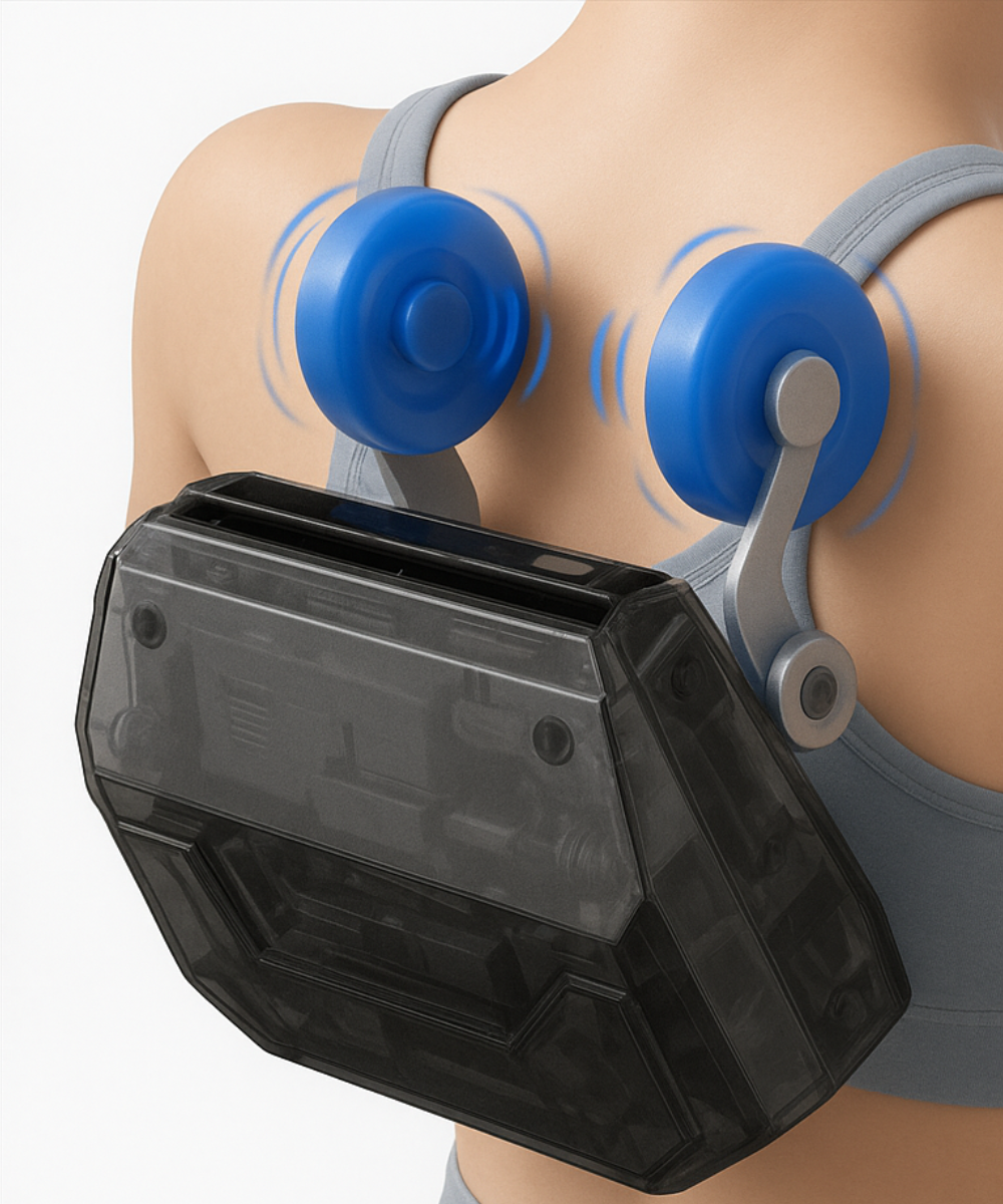 Zachte compressie en ritmische druk stimuleren de doorbloeding en ontspannen vermoeide onderarmen en handen.