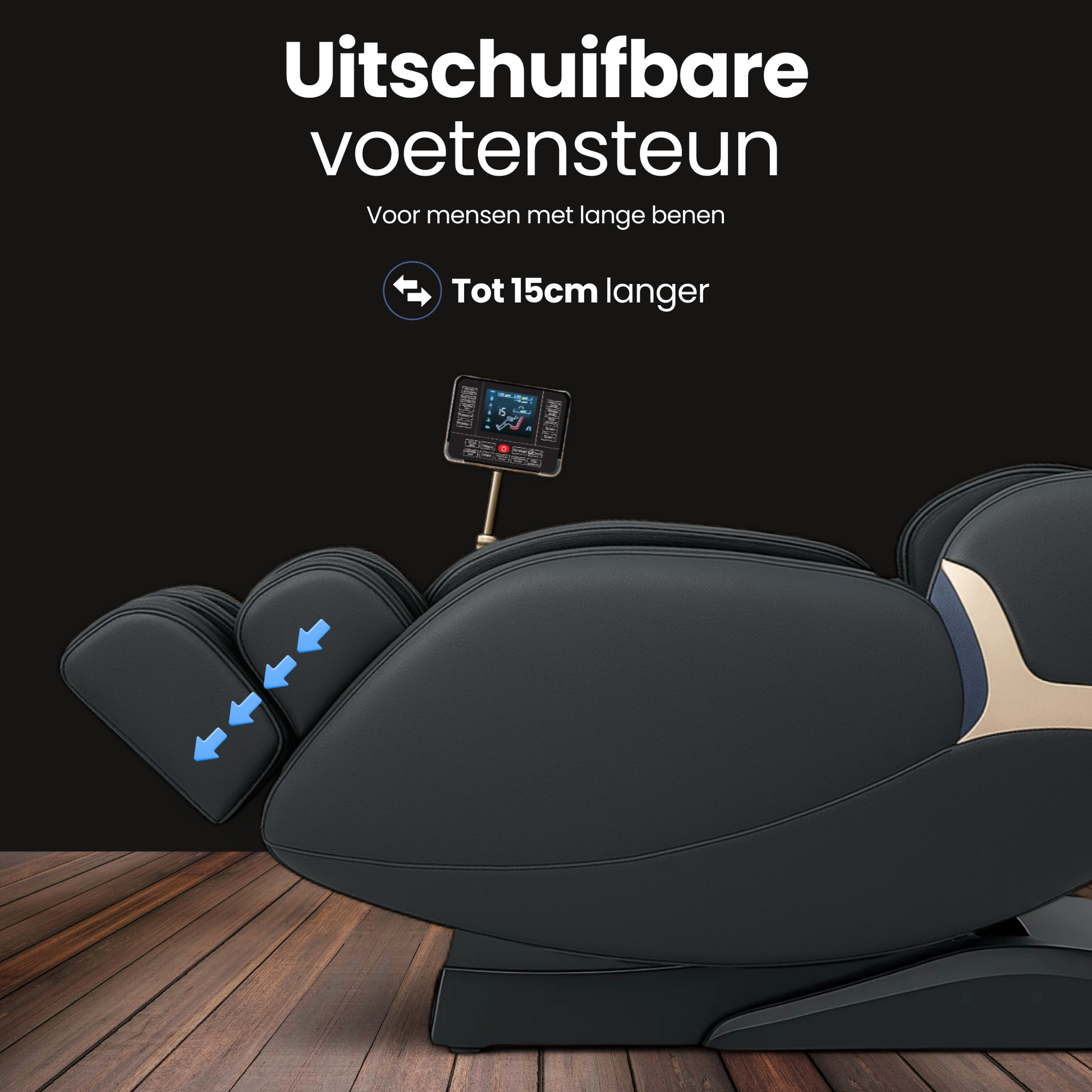 Ja. De PLUTO is geschikt voor gebruikers van 150 tot 190 cm. De verstelbare voetsteun en automatisch aanpassende massagerollers zorgen dat de stoel zich naadloos afstemt op jouw lichaamsvorm.